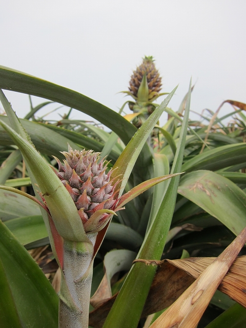 よくお客様から「パインってこうなるんだ!!」と驚きの声が出ますが お花のなりかたもビックリですね