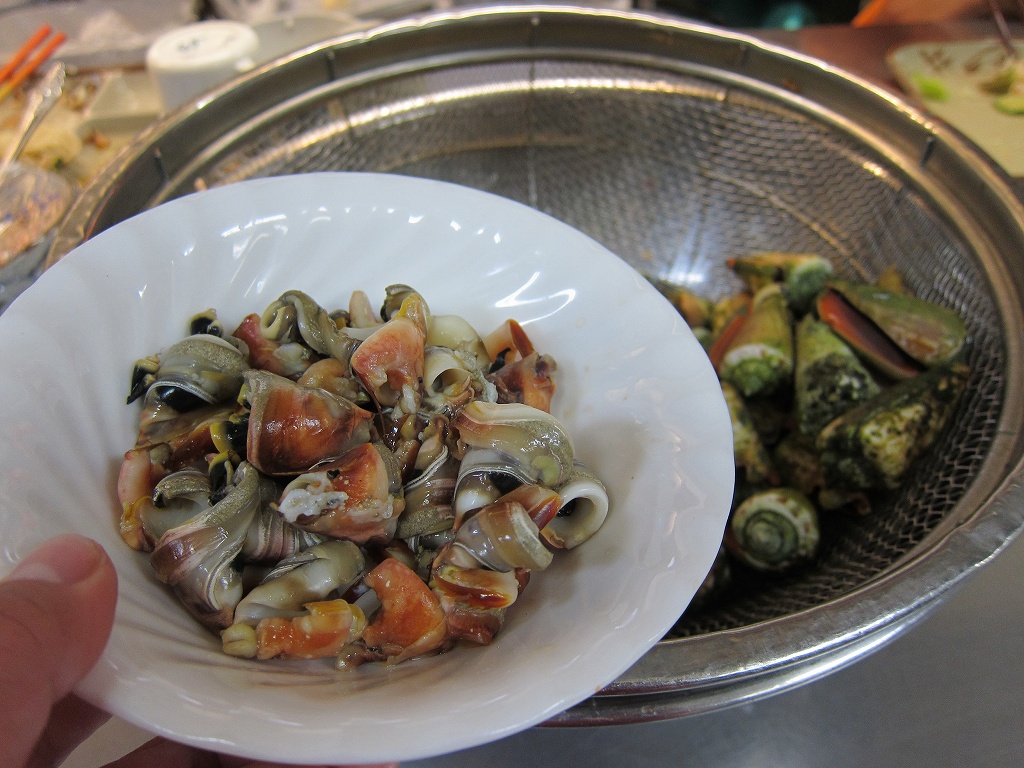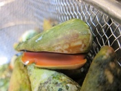 採ったものを網に入れていたのですが 貝なのにバシャバシャ動くのですΣ( ̄□ ̄) ギザギザの爪が付いていてそれで動いてるそうです あまり言いたくないのですがゴキ○リの足みたいな・・・・ ̄▽ ̄ もう元気で活きがいい!!
