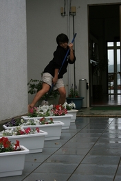 ようやく全部のお花が植え終わりました!! ヴィラの正面もレストランの窓からもいっぱいのお花♪ まだまだ続くであろう「もっこ」の痒みなんてふっとんじゃう!!かな・・・