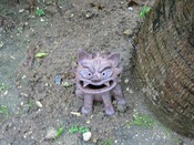 写真は、最近までフロントにあったシーサーです。 お引越ししたのでお知らせします。 さてこのシーサーですが、今は庭のあちこちに散らばっています。 皆さん、ご来宿の折には探してみてください。 『隠れシーサー』、あと幾つあるでしょうか?