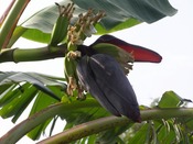 そして、ヴィラ庭のバナナの花。小さいバナナ分かりますか? まだまだ先ですが、島バナナができますよ〜。