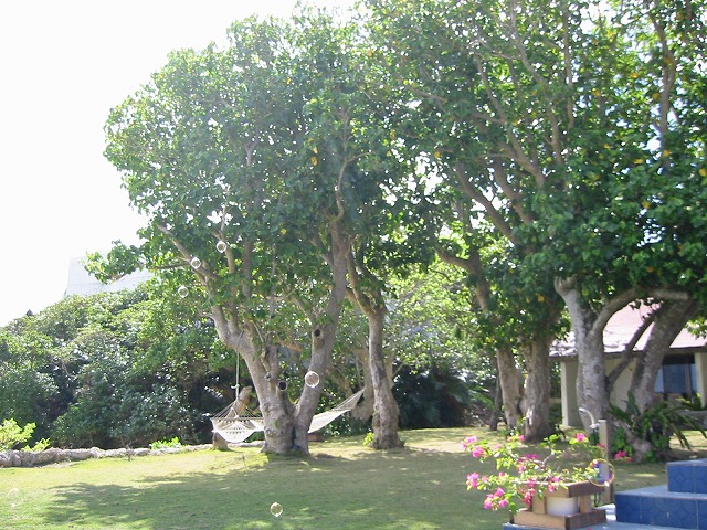 さて今回は、お客様からお問い合わせのあった樹をご紹介します。 ヴィラの中庭にある大木。 ハンモックを吊るすのにちょうど良く、とても重宝しています。